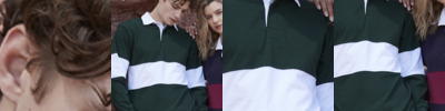 Heavyweight. Traditional white woven collar and inner placket. Herringbone taped neck and shoulders. Concealed two rubber button placket. Sewn-in contrast stripe around the body and sleeves. Elastane ribbed cuffs. Contrast herringbone taped side vents. Twin needle hem. Tag free. For leisure use only.